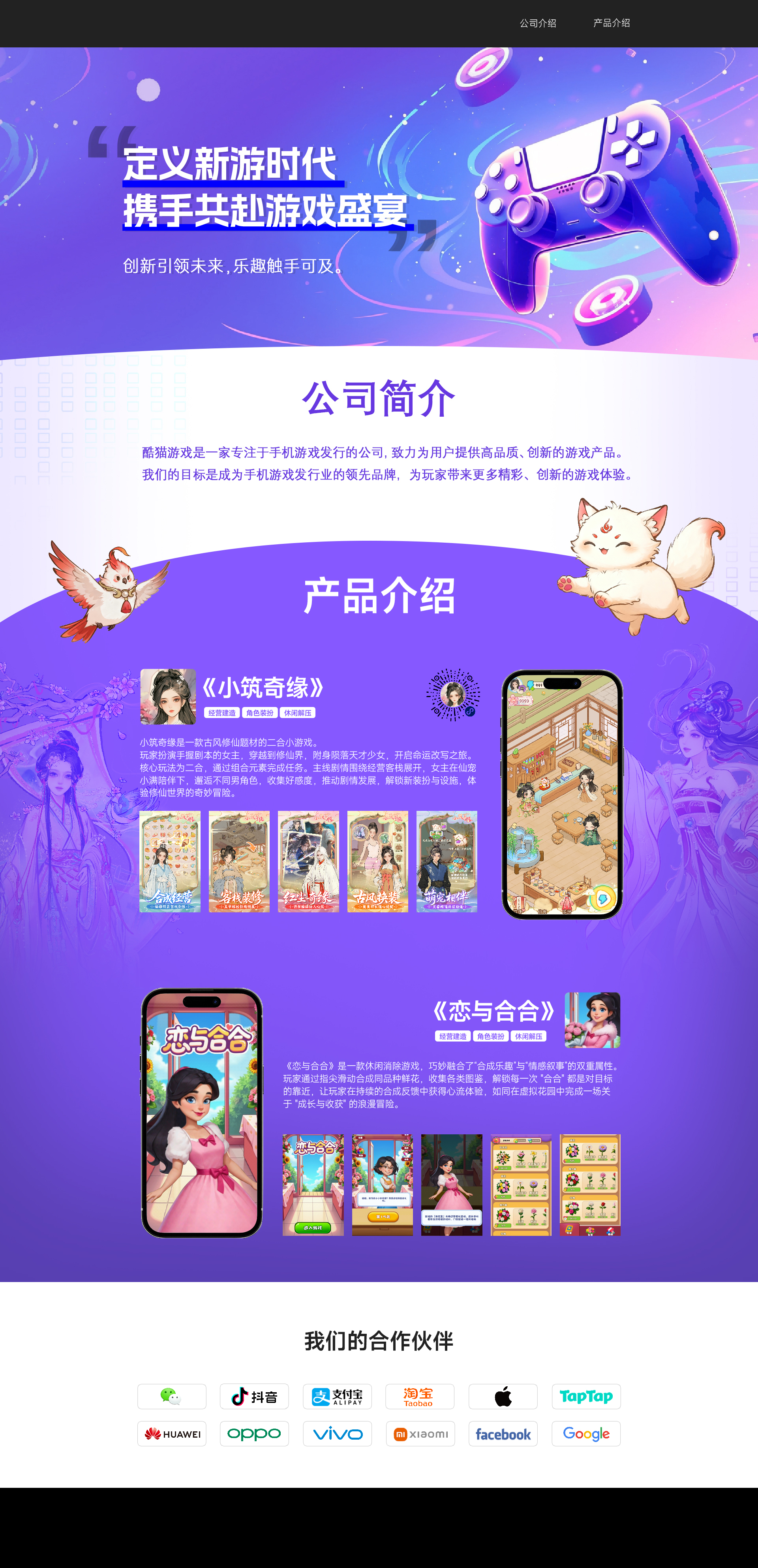 酷猫游戏是一家专注于手机游戏发行的公司,致力为用户提供高品质、创新的游戏产品。 我们的目标是成为手机游戏发行业的领先品牌,为玩家带来更多精彩、创新的游戏体验。